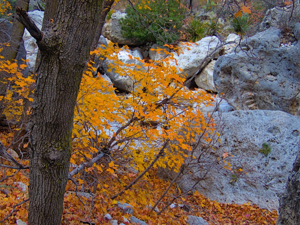 After our day underground at the Carlsbad Caverns it was time to get back out into the sunshine. Before heading out on this trip I had never heard of the Guadalupe Mountains National Park. After studying the map, we were going to be too close not to go, and it was a very pleasant surprise. We were a few days into December but the fall colors were on full display in Pine Spring Canyon as we hiked up to the Devil’s Hall.