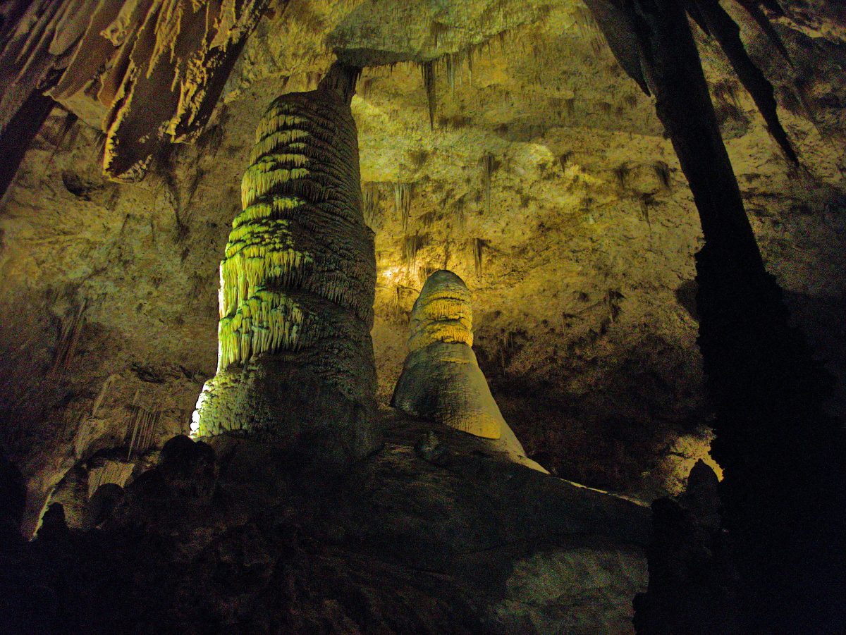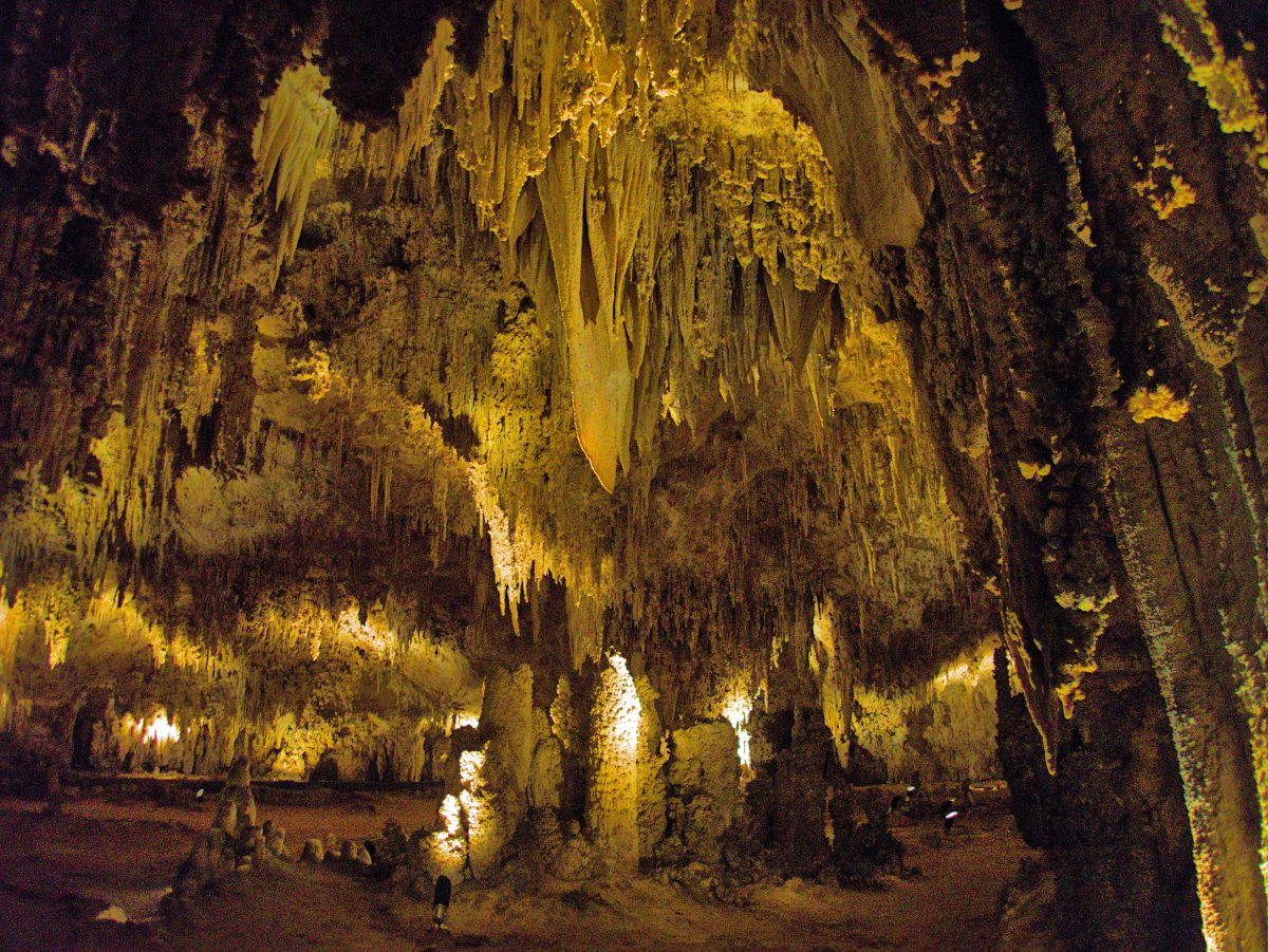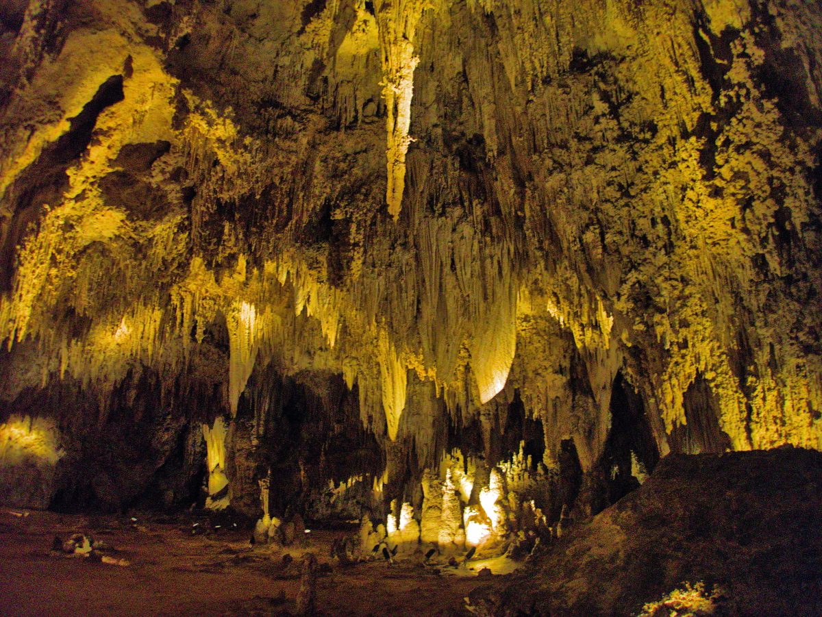 250 million years ago southeastern New Mexico and western Texas were covered by the Delaware sea. Millions of years of uplift later the reef filled with large mineral deposits and fossils turned to the land we now call the Guadalupe Mountains. Groundwater reacting with these minerals formed acids that slowly dissolved these deposits to form what is today Carlsbad Caverns. As one of the most accessible and largest cave complexes in the world it is home to the “Big Room” the largest cave chamber in North America which you can see via a self guided tour.