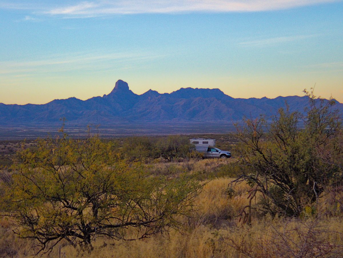 We drove the ‘pronghorn loop’ but things were pretty quiet, no wildlife, and it seemed exceptionally dry here. The refuge has about 80 dispersed campsites, so after some looking around and we found one on a ridge where we could enjoy the view of Baboquivari Peak for a couple of days.