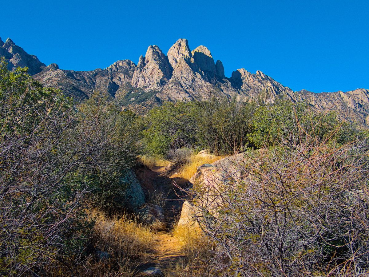 It’s nice when we don’t have to pack up camp every day, and the trails from the Aguire Springs Campground gave us the option to get out on the trail without having to drive anywhere. Just a note though, we can’t recommend the Indian Hollow trail that starts from the group camping area. After about a half hour on that one we had to give up, as the lack of maintenance and vegetation growth has pretty much erased that trail from existence. We found the pine tree trail to be much more of a trail, and it provided a lot of great views of the mountains, as well as the White Sands Missile Range.
