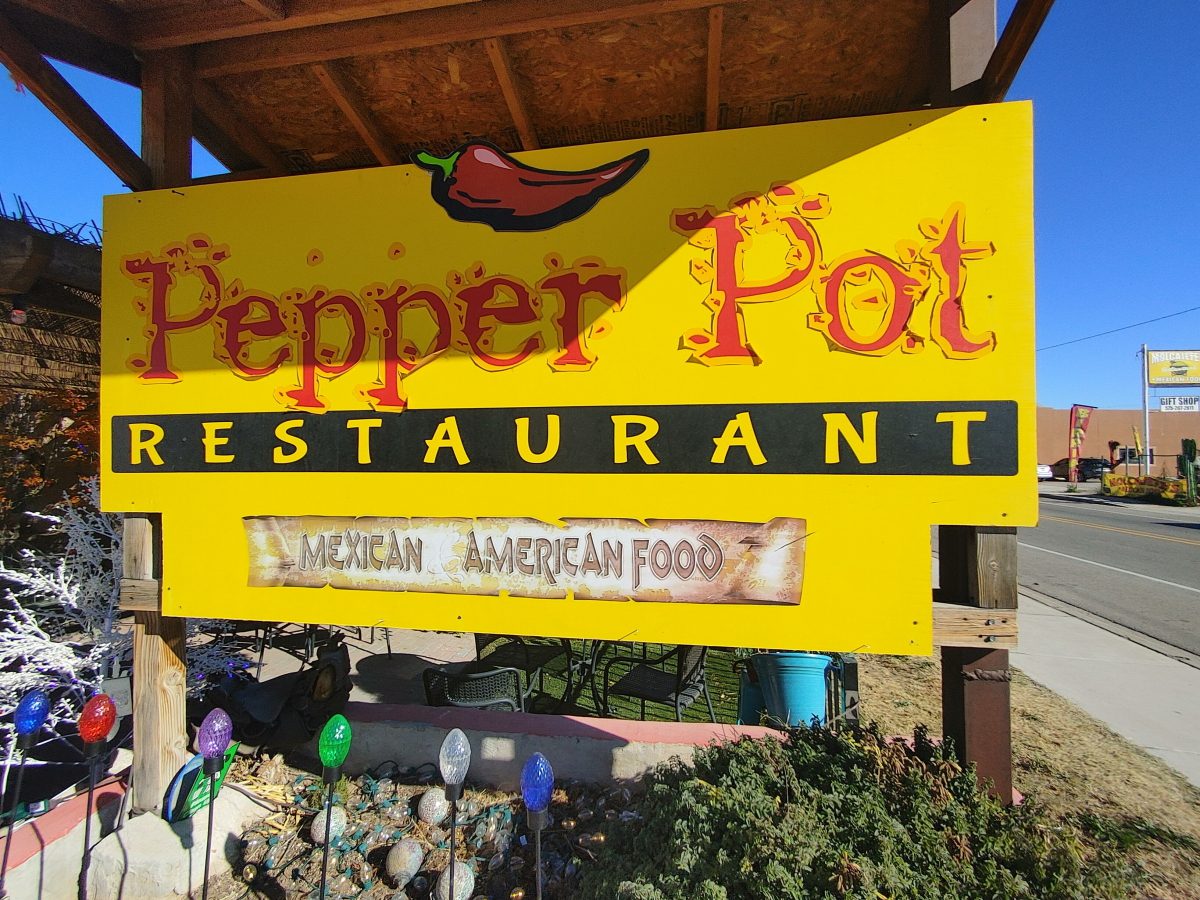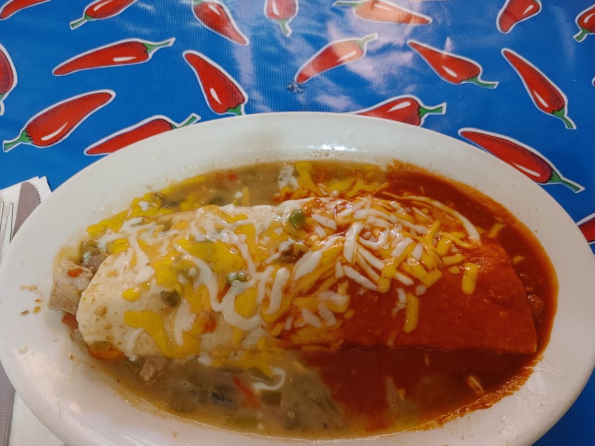 We moved on past Las Cruces and arrived in Hatch just in time for a late lunch. We haven’t gone wrong following Anthony Bourdain’s recommendations in the past, and the Pepper Pot was no exception. It was ‘Christmas’ a bit early with a 50/50 red and green burrito.