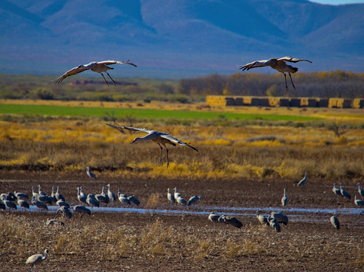 Yes, there were plenty of cranes here. It turns out that an estimated 20,000 cranes spend the winter here. There is a shallow wetland here that makes it an attractive place for them. We were told by several people that we talked to that the water was a fraction of its regular size due to ongoing drought and the fact that wildlife are unfortunately last in line when it comes to water rights.
