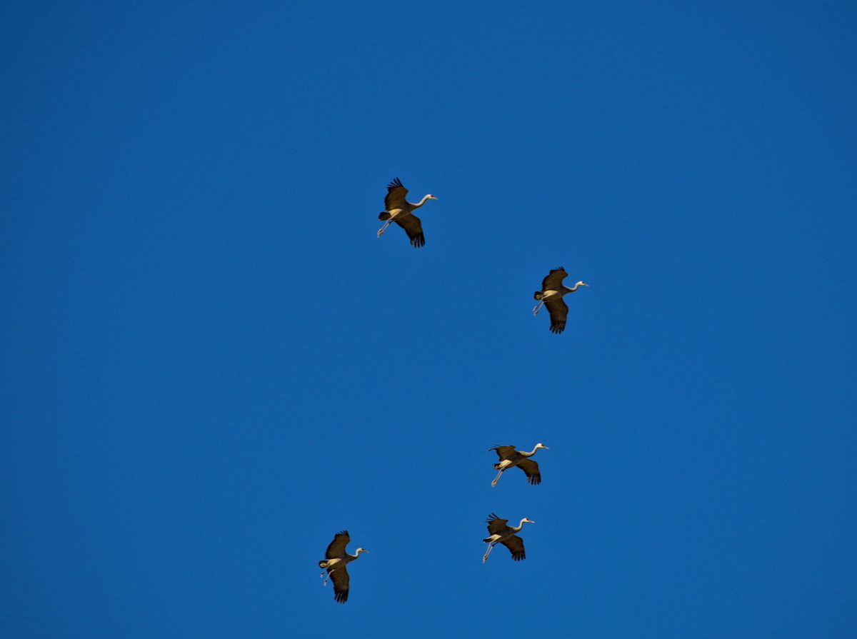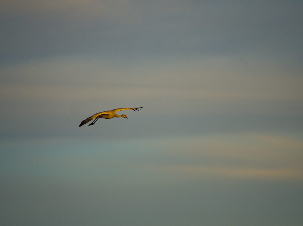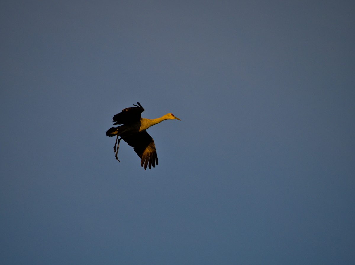As the sun started to set there was an increased level of coming and going. Most of the cranes roost here for the night, but there were also several groups heading out in search of an evening meal.