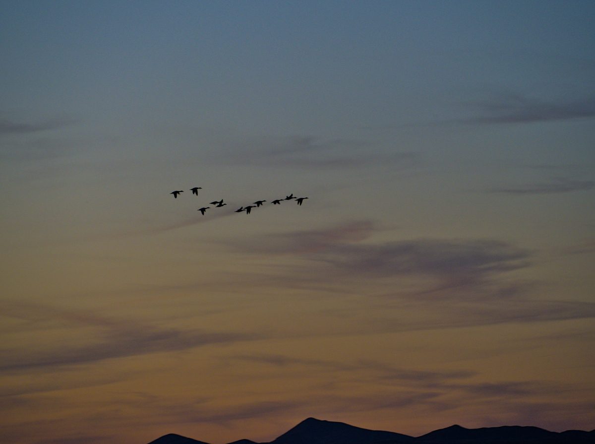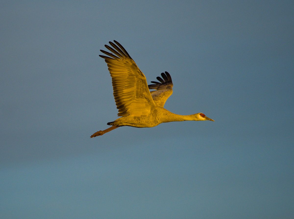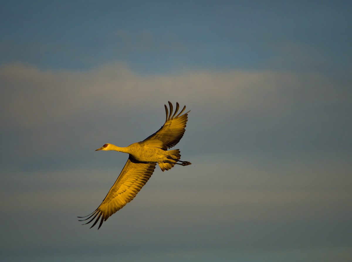 As the sun started to set there was an increased level of coming and going. Most of the cranes roost here for the night, but there were also several groups heading out in search of an evening meal.