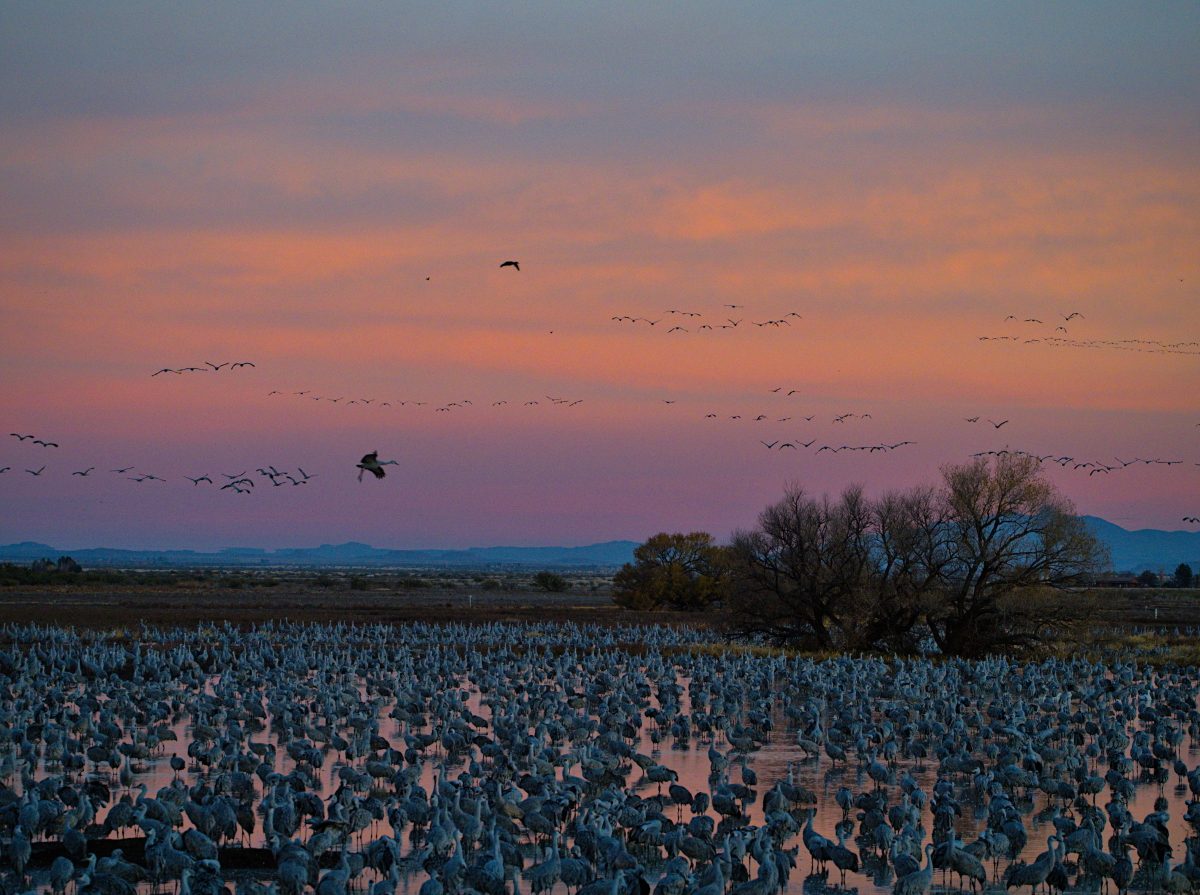 Sunrises and sunsets were spectacular at Whitewater Draw. The colors were spectacular, and it didn’t hurt that thousands of cranes were flying in and out as well.